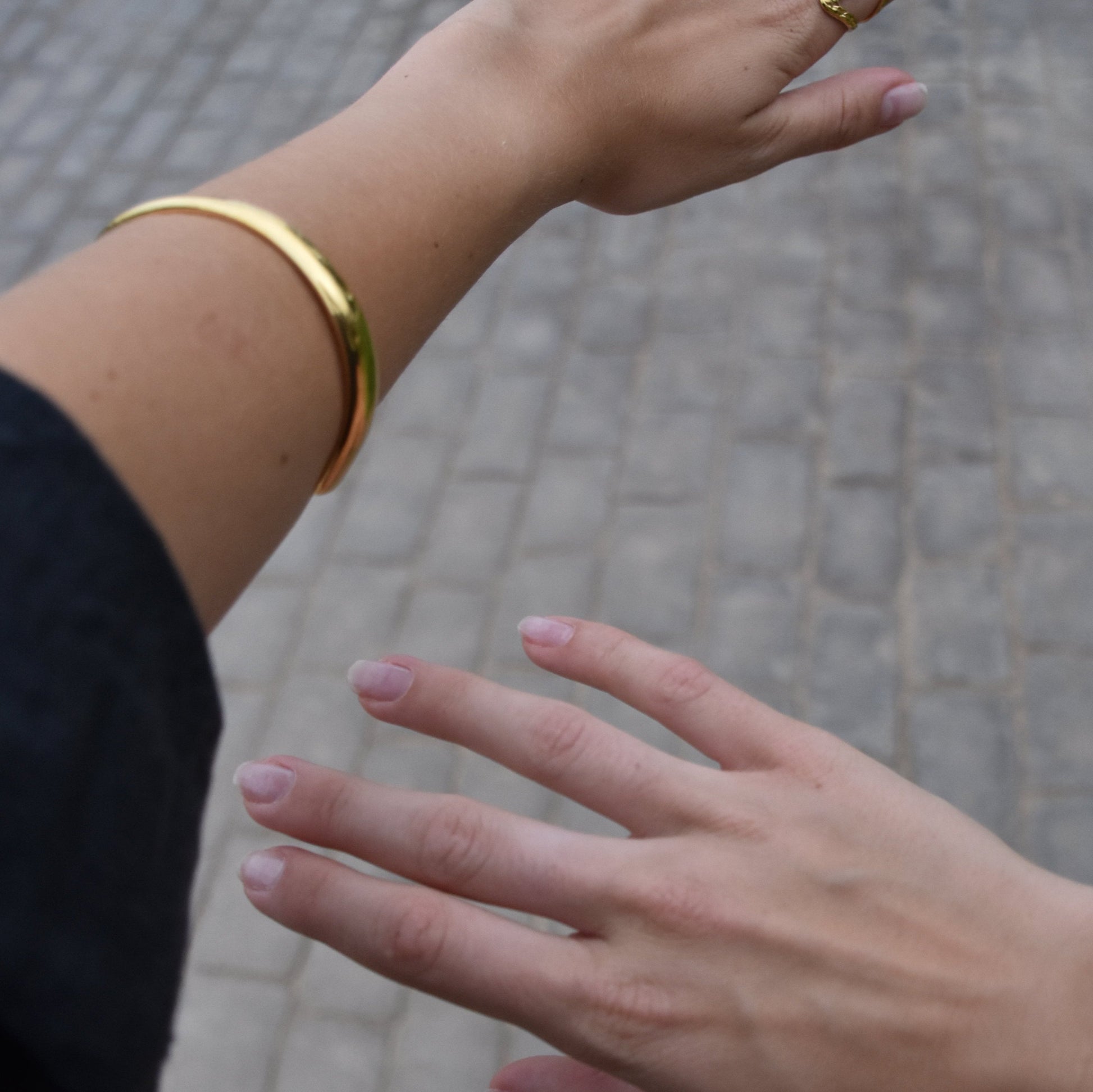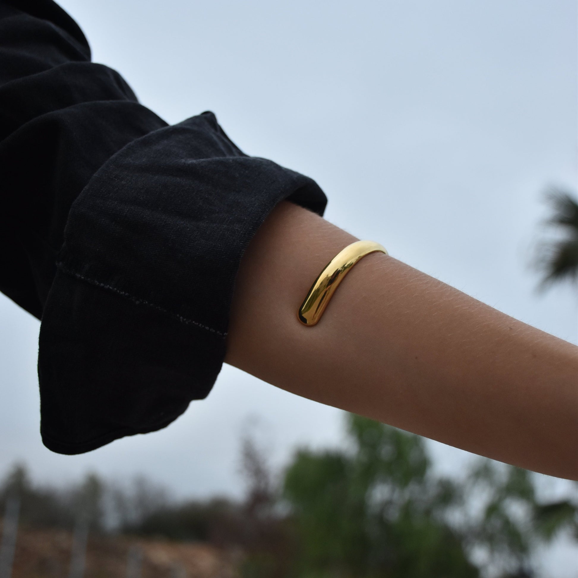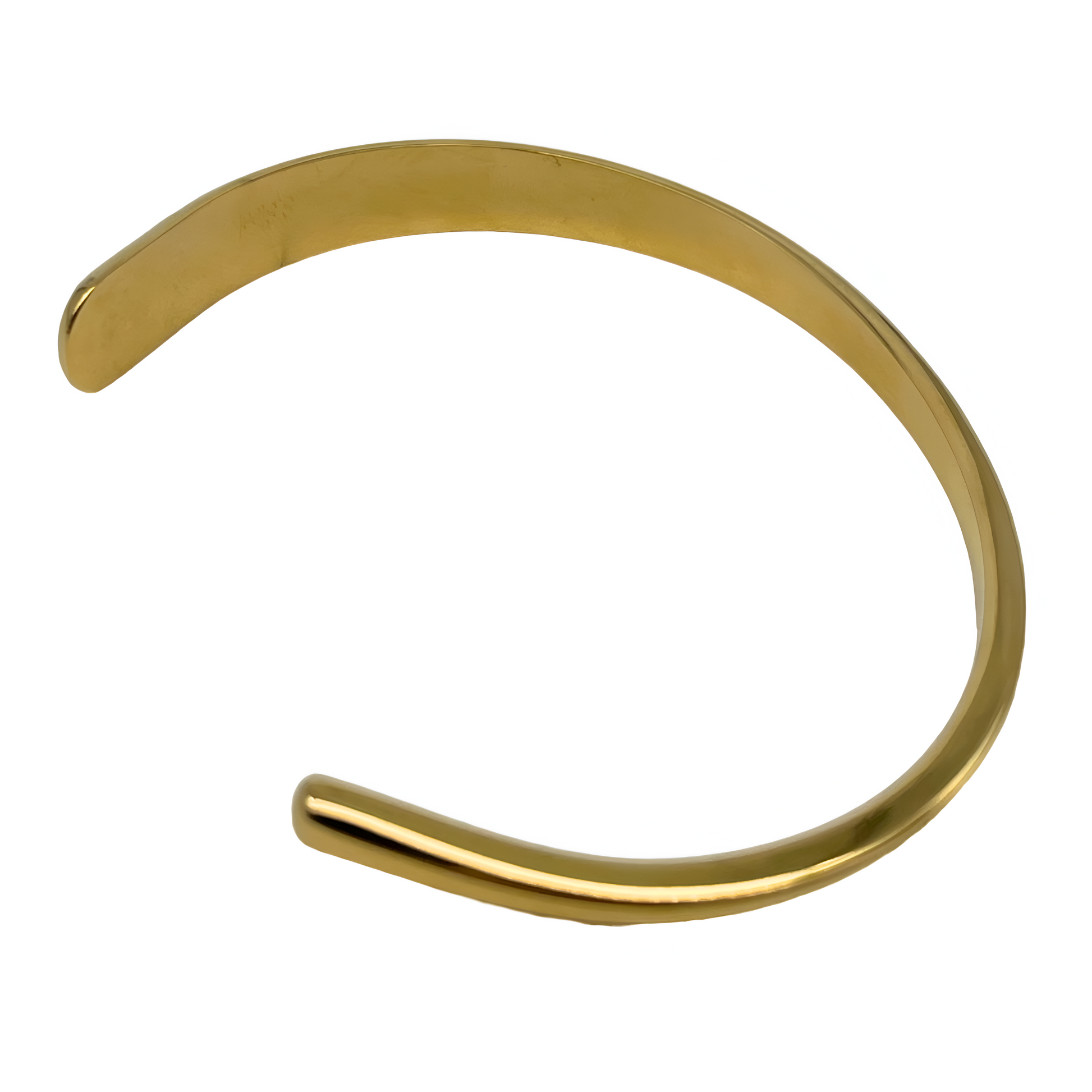 Con su acabado en dorado brillante, este brazalete es perfecto para añadir un toque elegante a cualquier look, ya sea casual o formal.