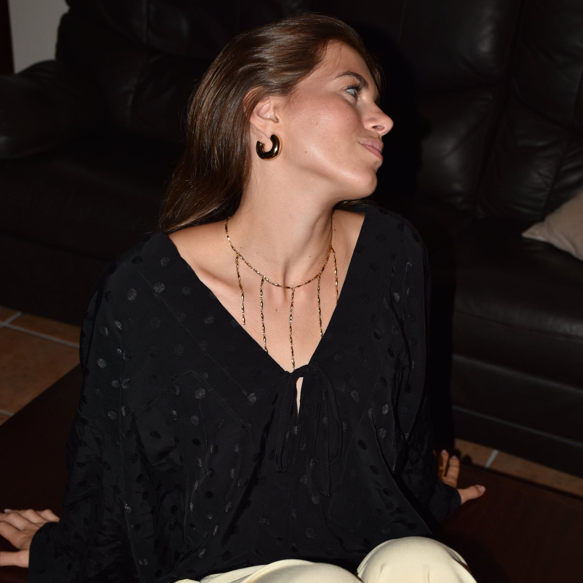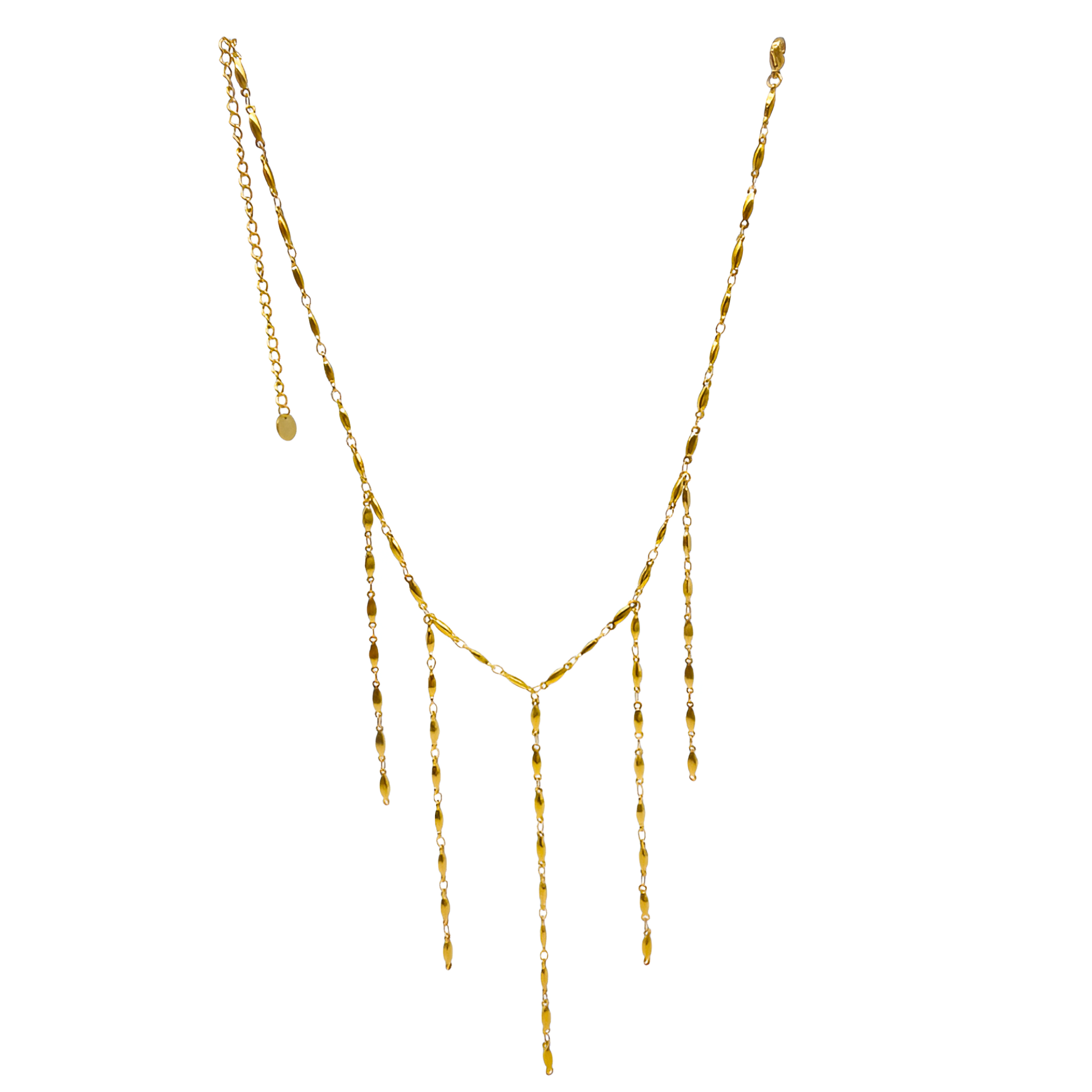 Con el Collar Arenita, resaltarás con un toque dorado y brillante que complementará tu estilo con distinción.