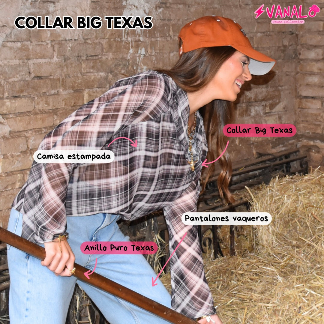 Este collar de acero inoxidable dorado captura la grandeza y el estilo inconfundible de Texas.