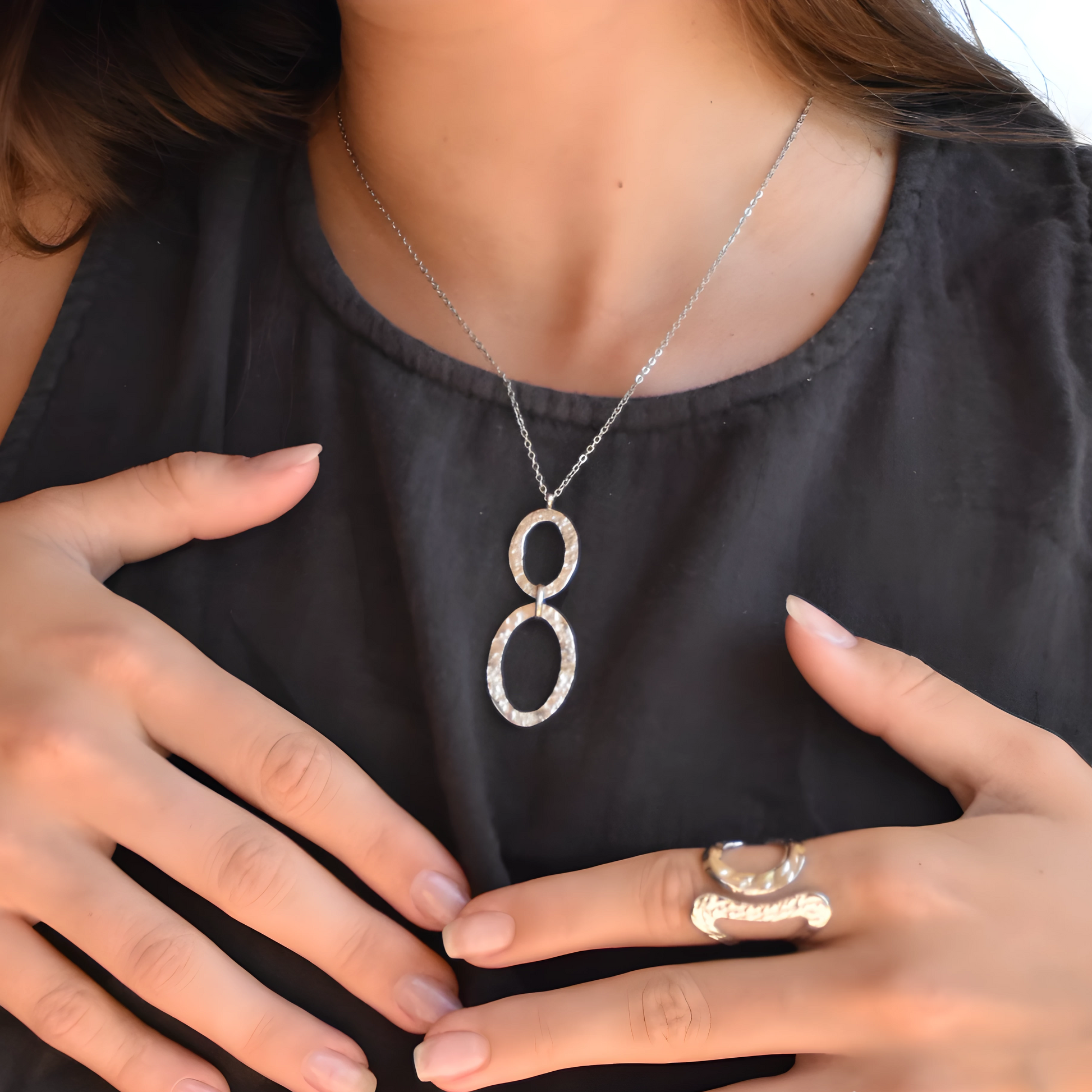 El Collar Fidedigna Plateado es un collar de acero inoxidable diseñado para mujeres que buscan un accesorio moderno y sofisticado. Combínalo con la pulsera Fidedigna.