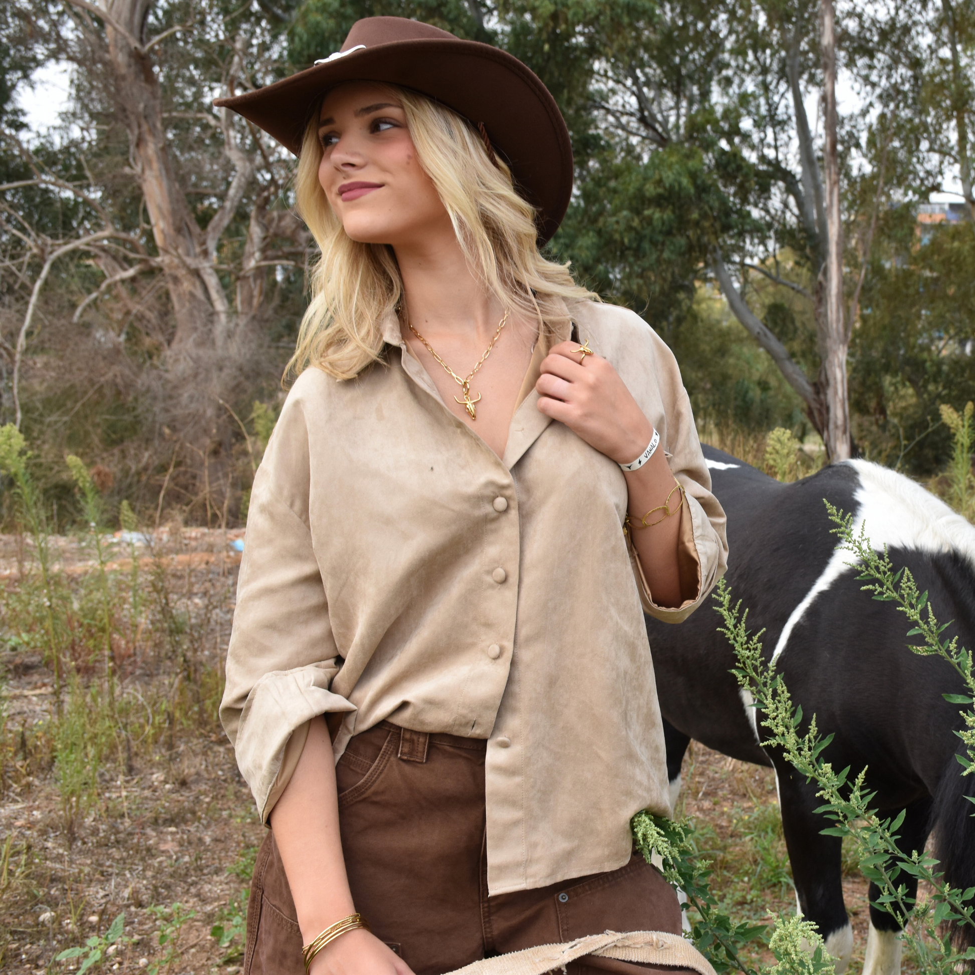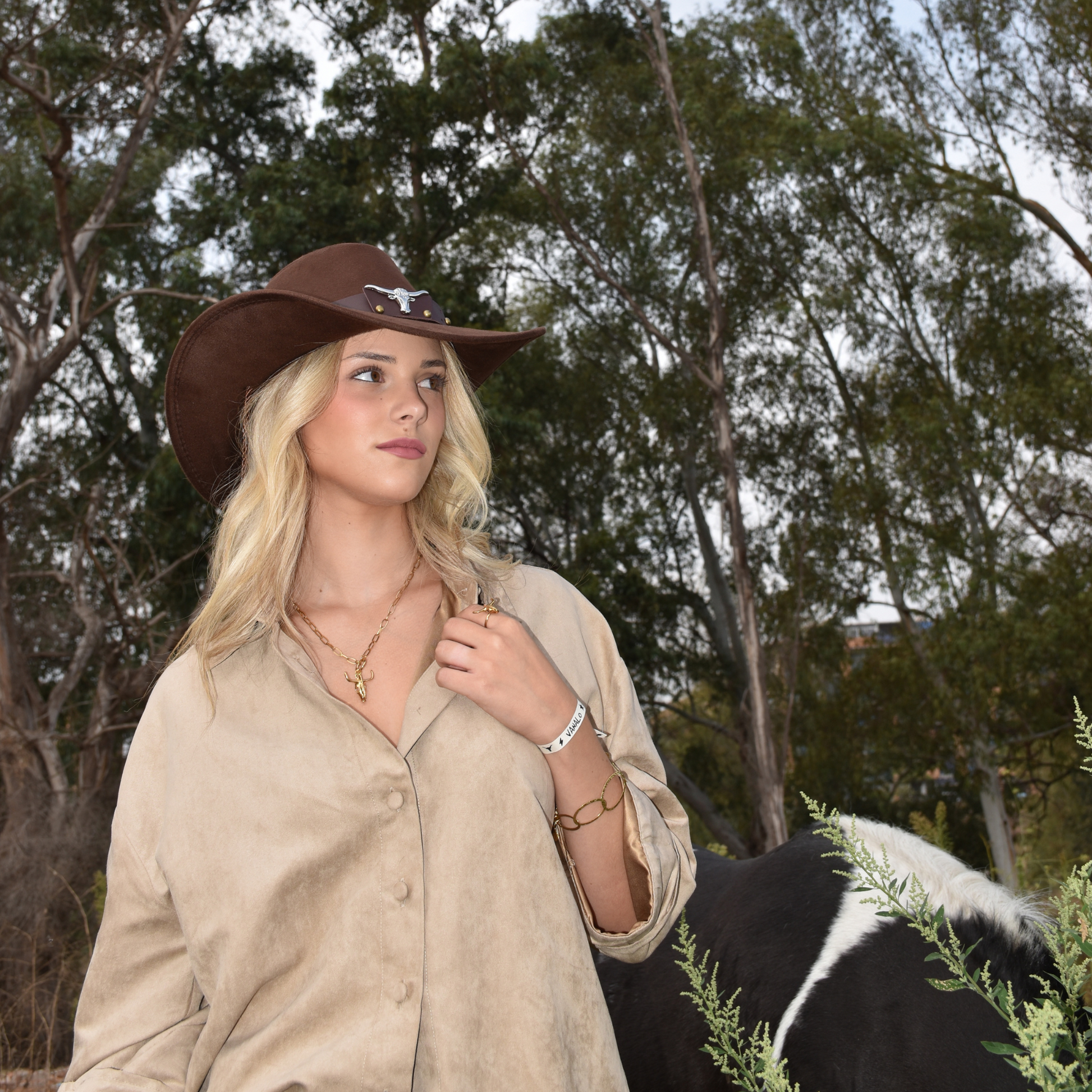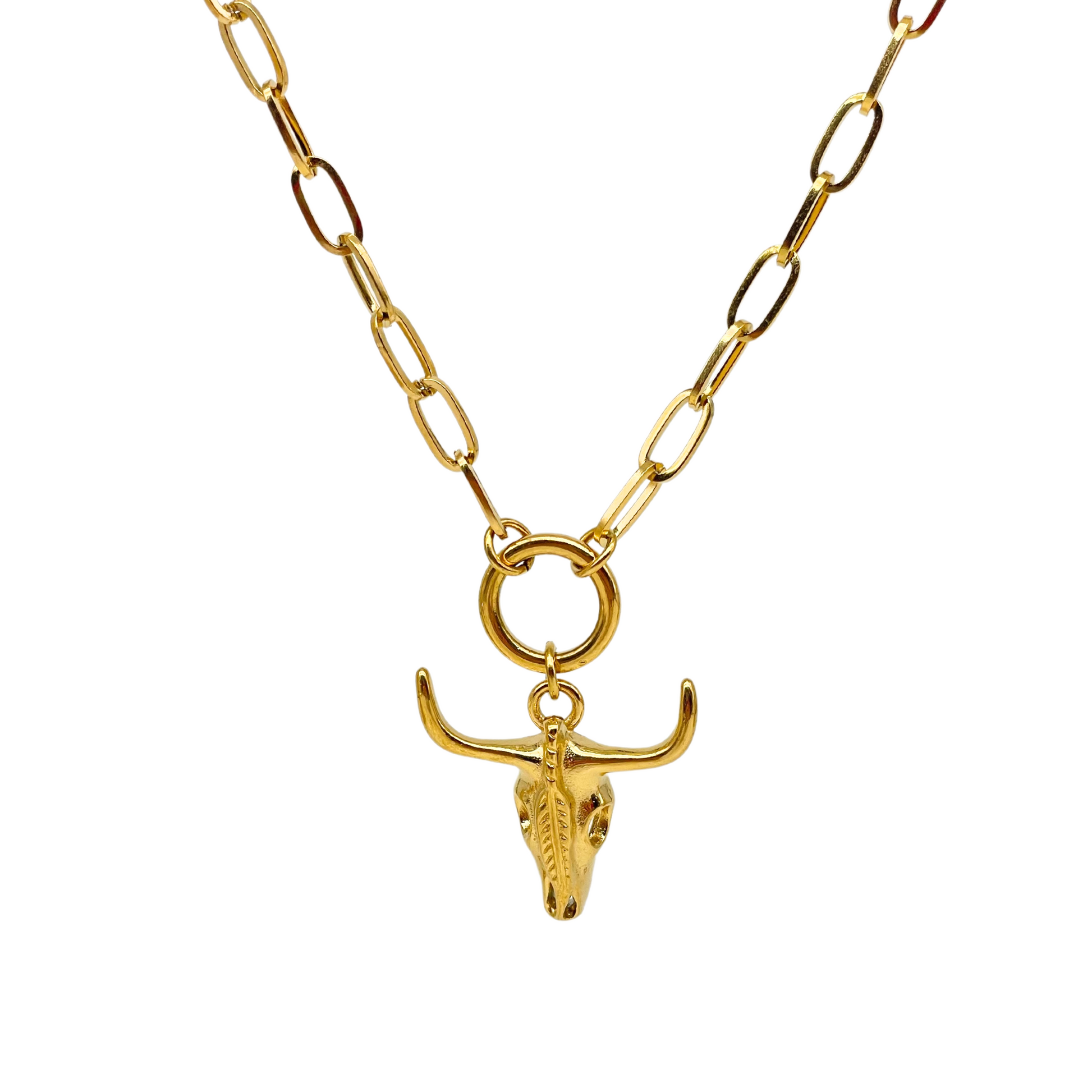 El Collar Rodeo Texas Dorado, hecho de acero inoxidable captura la fuerza y la autenticidad del estilo western. Su diseño dorado, inspirado en el espíritu del rodeo, es perfecto para quienes buscan destacar con un toque atrevido y sofisticado.