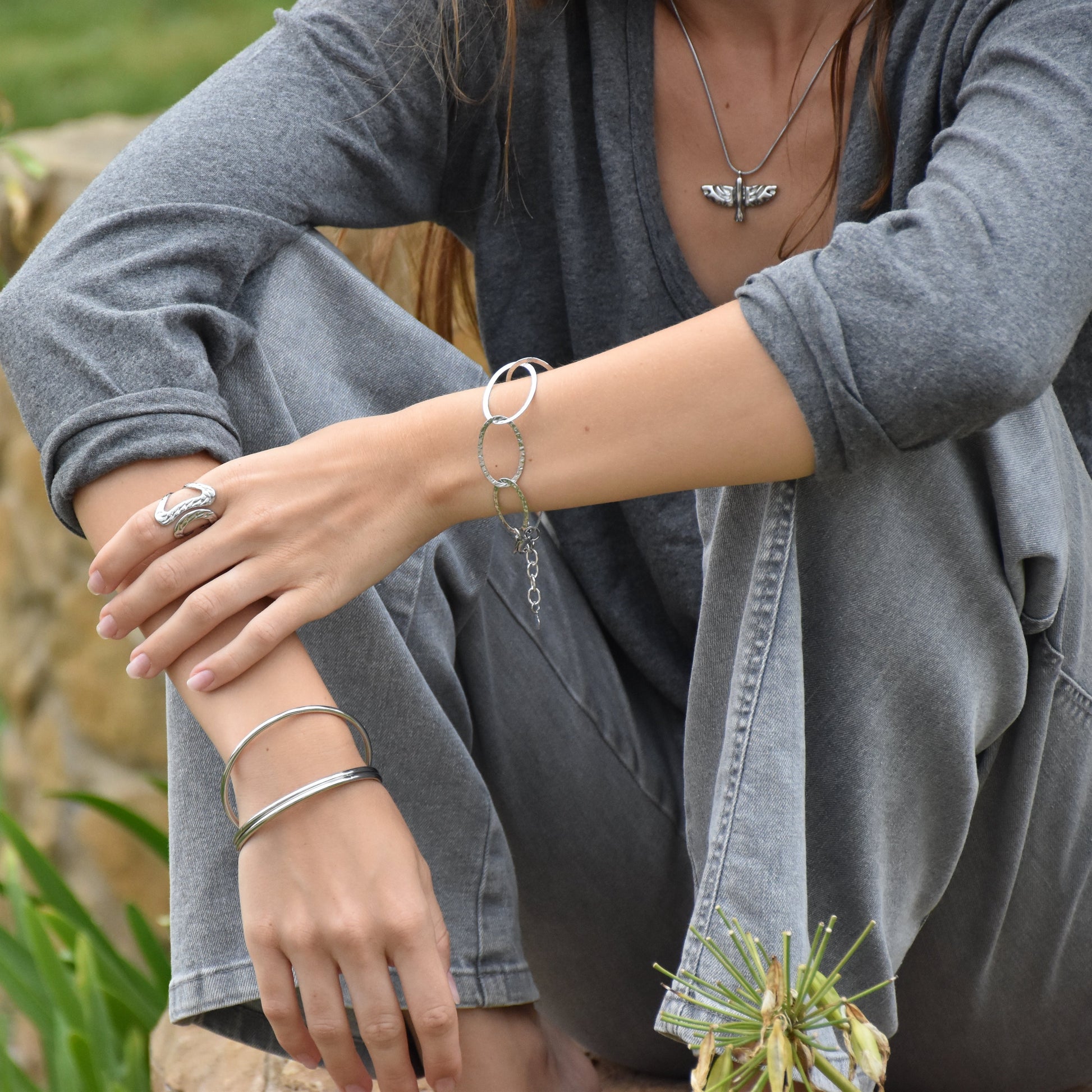 La Pulsera Fidedigna Plateada es una pulsera ajustable de acero inoxidable, ideal para mujeres que buscan un accesorio elegante y versátil.