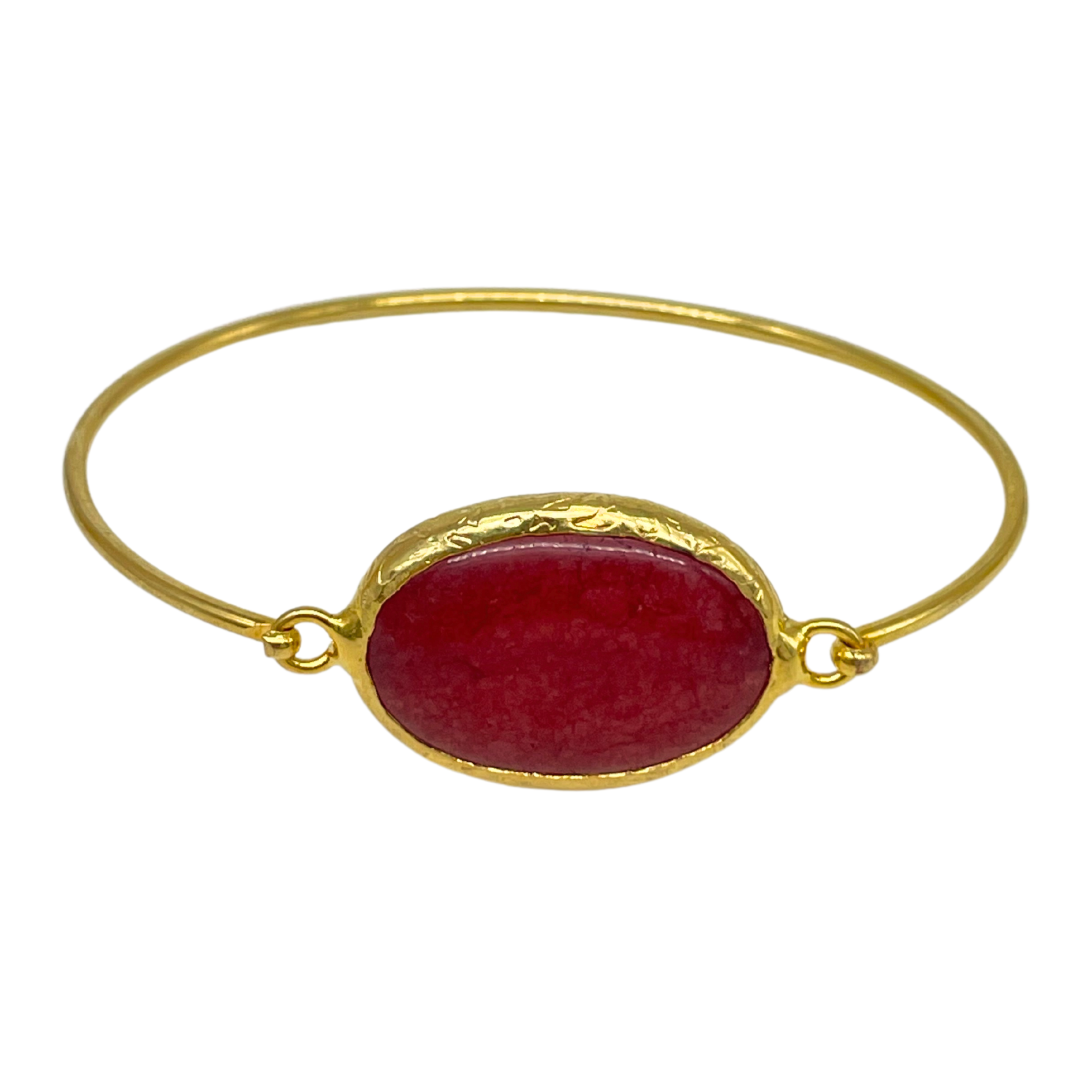 La pulsera Tifri, hecha de latón dorado y con una piedra roja granate en el centro, es el accesorio perfecto para quienes buscan añadir elegancia y carácter a su estilo. Esta pulsera combina el glamour clásico con un toque moderno, ideal para destacar en cualquier ocasión.