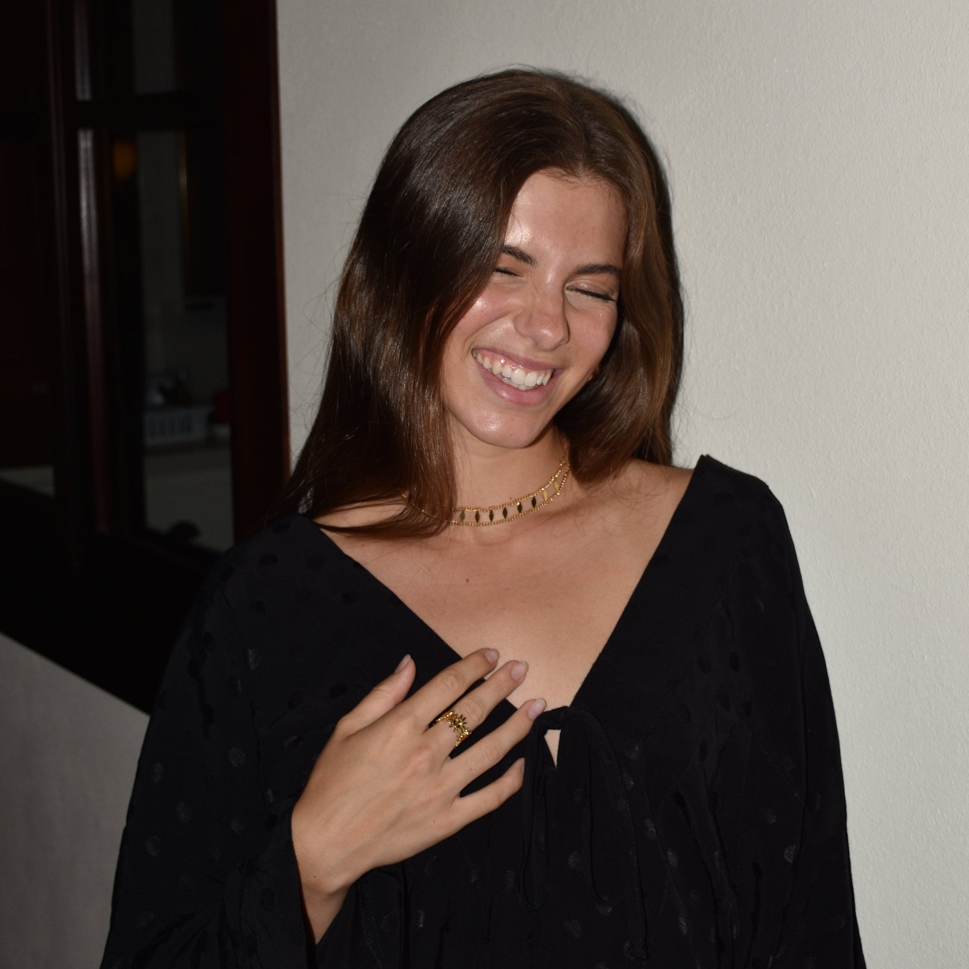 Seu design minimalista, feito em aço inoxidável de alta qualidade, garante durabilidade e brilho dourado que não desbota com o uso.